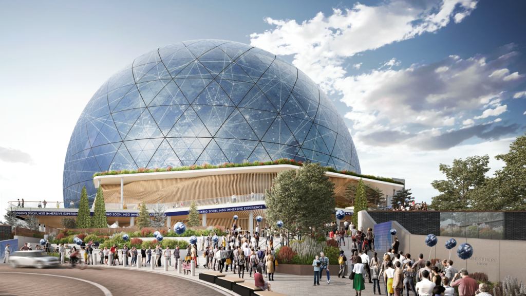Организация London Legacy Development Corporation (LLDC) одобрила заявку на строительство арены MSG Sphere, несмотря на значительное сопротивление местных жителей. Место проведения было спроектировано Populous, архитектором Лондонского стадиона и стадиона Тоттенхэм Хотспур. Купол высотой 90 метров будет покрыт мигающими светодиодными панелями, предназначенными для отображения цифрового контента по всему фасаду сферы. Это может быть и художественный контент, и просто рекламные ролики.