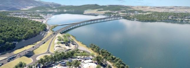 Расположенный вниз по течению от старого моста, новый будет иметь расширенные развязки на обоих концах и общую дорожку для велосипедистов и пешеходов.