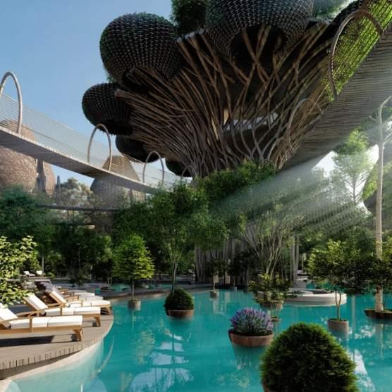 Вокруг «дерева жизни» планируется построить бассейн, напоминающий естественное озеро. Его украсят местными растениями, деревьями и кустарниками. А по периметру поставят тренажерный зал, рестораны, спа-центры и другие заведения.