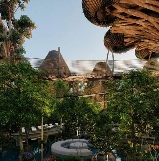 Среди мексиканских джунглей неподалеку от города Тулума планируется построить курорт с домами в виде больших гнезд. Разработкой проекта гостиницы Life Tree («Дерево жизни») занималась барселонская архитектурная студия DNA.