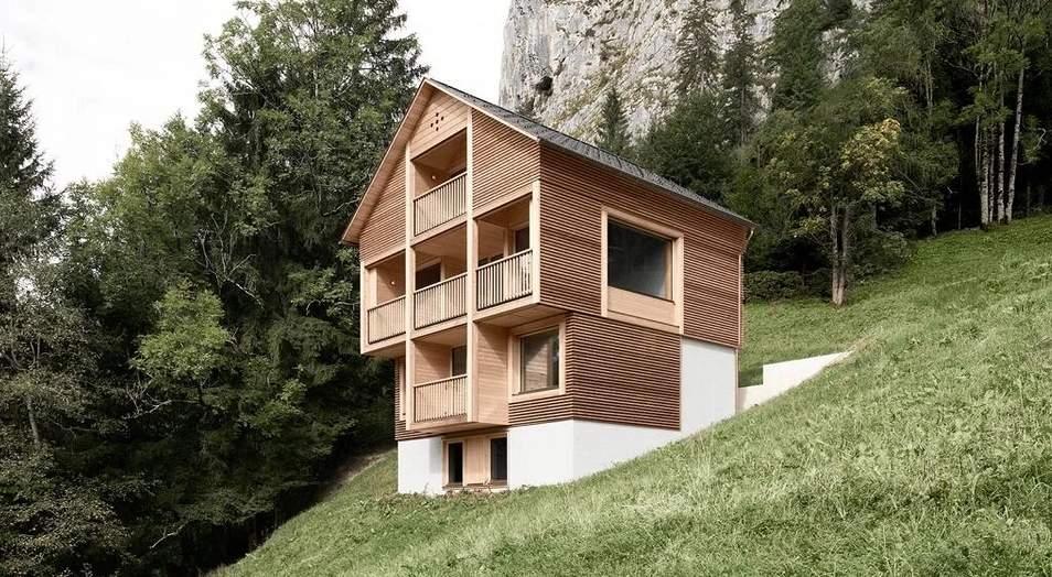 Архитектурная студия Innauer Matt Architekten построила дом для отдыха на природе, с видом на горный ландшафт Форарльберга. Хотя жилье располагается в районе небольшой австрийской деревушки, оно стоит поодаль от других домов на склоне горы. Так проживающие смогут полностью насладиться загородной тишиной и прекрасными пейзажами.