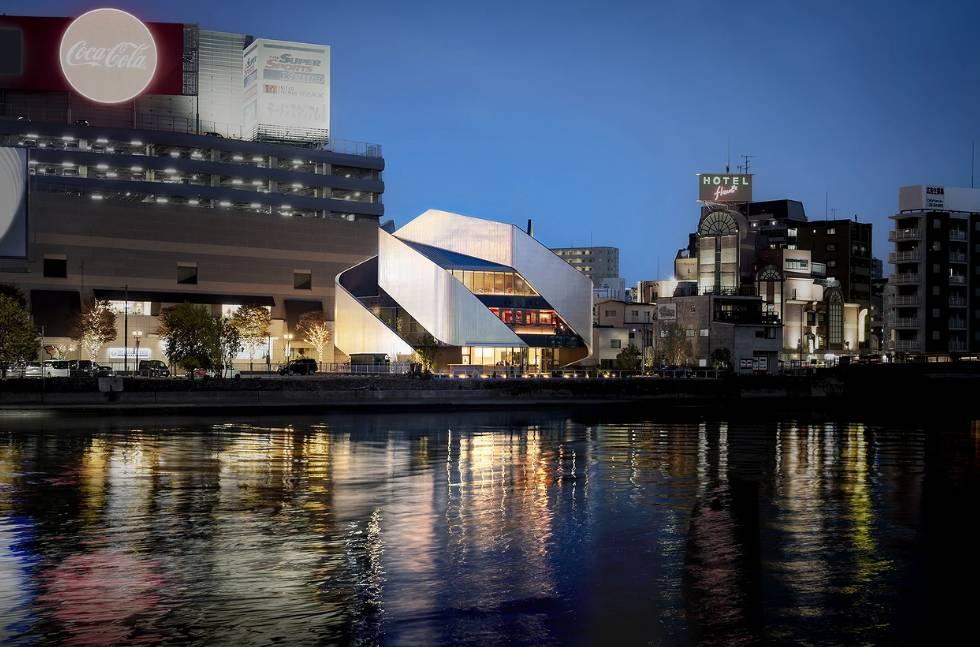 В Фукуока построили культурный центр, фасад которого декорировали стальными «лентами». Разработкой проекта занималась архитектурная фирма Clouds Architecture Office, известная различными креативными проектами по всему миру.