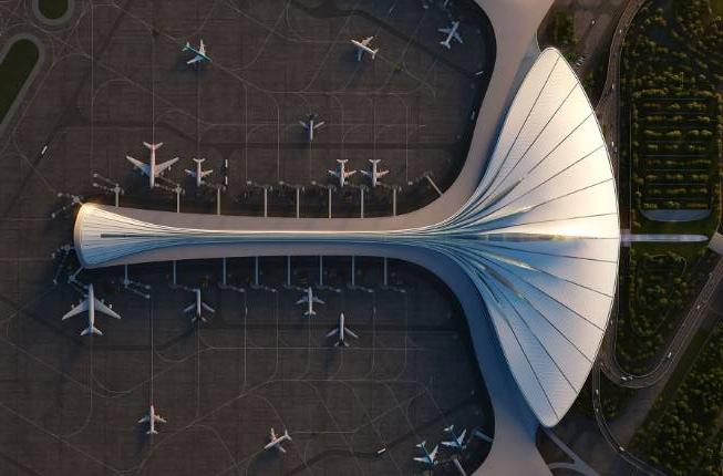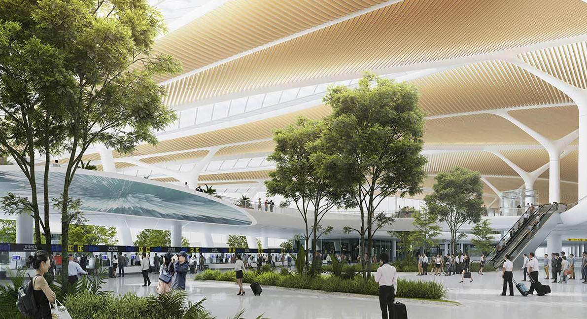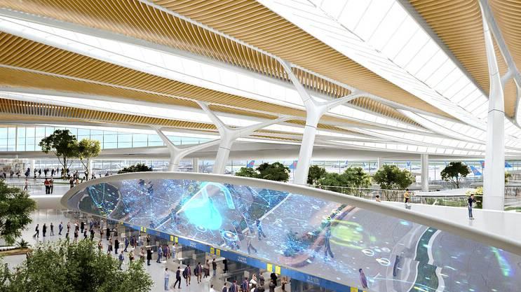 Новое здание аэровокзала, которое станет первым крупным авиатранспортным узлом аэропорта, займет в общей сложности почти 270 000 квадратных метров на площади 177,6 га. Форма аэропорта напоминает «парящее перо» благодаря плавным линиям, которые четко обрамляют строение. Новое здание продемонстрировало трехконтурную структуру коридора, который ведет пассажиров на посадку самолетов к 54 выходам.
