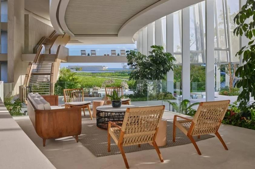 Жилые районы курорта имеют полукруглую форму, а общественные зоны имеют круглую форму с внутренними дворами посередине, в которых есть удобства. По словам студии, на круговую программу повлияла космология майя. Вестибюль представляет собой трехэтажное частично открытое пространство с отделкой из известняка, ореха и текстиля, которые дизайнер интерьеров Chapi Chapo Design пронес через весь курорт.
