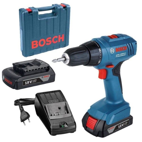 Шуруповерт Bosch GSR 1800 LI Professional Аккумуляторная дрель-шуруповерт Bosch GSR 1800-LI применяется при установке вентиляции и кондиционирования, сантехнических работах, в сфере ЖКХ, при техническом обслуживании и ремонтных работах. Смена рабочих насадок производится мгновенно и без лишних усилий благодаря быстрозажимному патрону. В зависимости от плотности материала, при заворачивании и выворачивании шурупов, можно выбрать один из 25 режимов крутящего момента. Функция реверса для возможности откручивать крепеж и упрощает выведение застрявшего сверла. Узкая рукоятка снижает усталость при работе. 2 аккумулятора - для продолжительных работ. Bosch Electronic Cell Protection (ECP): система защиты аккумулятора от перегрузки, перегрева и глубокого разряда. Чемодан - для удобства хранения и транспортировки инструмента и принадлежностей. Внизу на корпусе инструмента есть встроенный отсек для хранения бит. Рукоятка Bosch GSR 1800-LI имеет прорезиненную вставку для надежного хвата без проскальзывания рук. Модель имеет две рабочих скорости: одна предназначена для работ с крепежами, вторая - для сверления. Муфта регулировки крутящего момента позволяет максимально точно выставить необходимое значение крутящего момента под конкретную плотность материала. Быстрозажимной патрон способствует быстрой и удобной замене расходного инструмента. ikarvon.uz