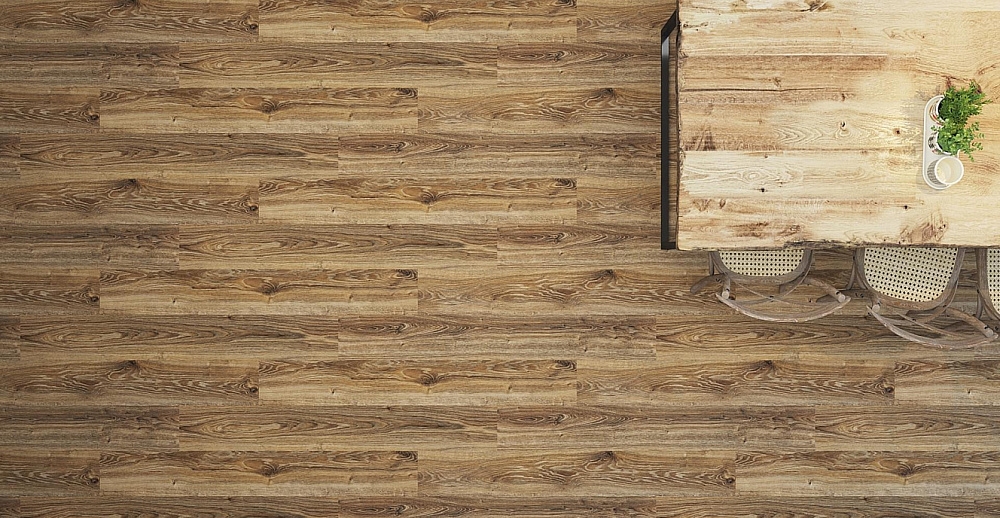 Старое ухоженное дерево под полуматовым лаком - так выглядит этот ламинат для пола. В действительности же - это недорогой ламинат Kastamonu Red Дуб Французский Тёмный.