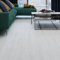 Это покрытие толщиной 8 мм, порода дерева - дуб, без фаски. Брашированная поверхность ламината имеет светлый оттенок и матовый блеск.