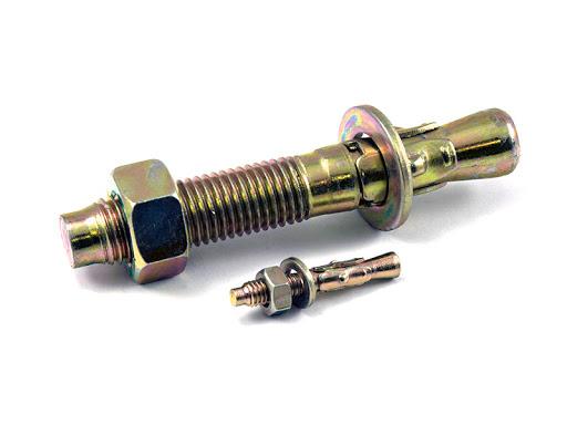 Клиновые – стальной стержень с конусообразным хвостовиком, муфтой и гайкой. Иными словами, это просто большой болт с такой же большой муфтой, который и действует в точности по тому же принципу: когда мы затягиваем гайку, муфта наползает на хвостовик, благодаря чему происходит распирание. Таким образом конструкция надежно удерживается в несущей основе.