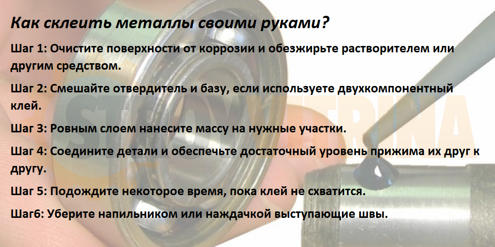 Покупка вязкой основы, которая не только склеивает части металла между собой, но и обеспечивает сцепление с поверхностями из других материалов является самым оптимальным на сегодняшний день решением.