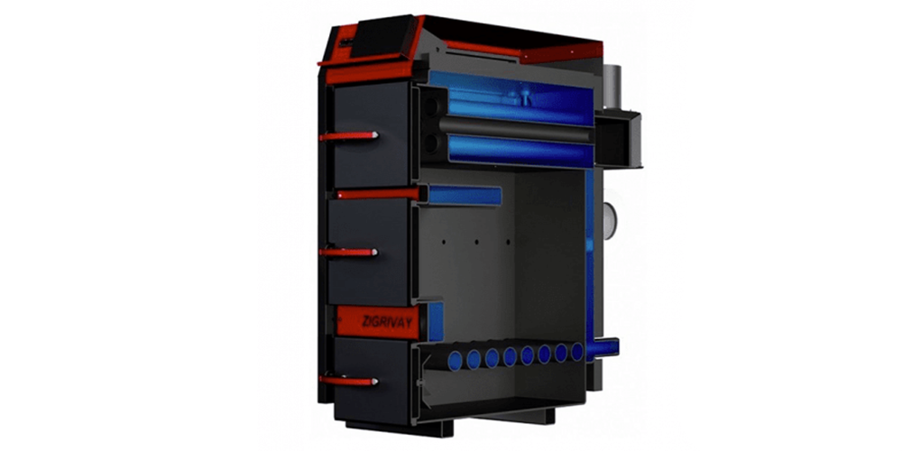 - Котлы с дополнительной тягой — в отличие от котлов с естественной тягой данный вид оснащен вентилятором, который дополнительно подает воздух в топку, а мощность вентилятора регулируется в зависимости от сжигаемого топлива и дымовой тяги;