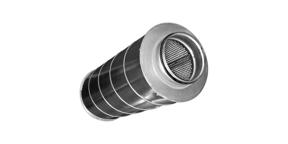 - Трубчатый круглый — конструкция, имеющая круглую или прямоугольную формы. Круглый шумоглушитель состоит из двух труб различного диаметра, между которыми находится звукопоглощающий материал, который защищён металлической сеткой. Обычно используются для воздуховодов с сечением не более 400 мм;