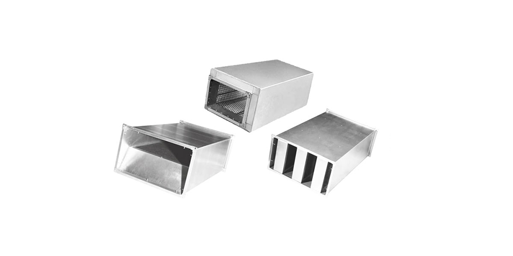 - Трубчатый прямоугольный — конструкция, состоящая из двух прямоугольных металлических коробов с различным сечением воздуховода. Пространство между ними заполнено звукопоглощающим материалом. Стенки внутреннего канала выполнены из мелкоячеистой сетки или путём перфорации металла. Используются в системах вентиляции прямоугольной или квадратной формы;